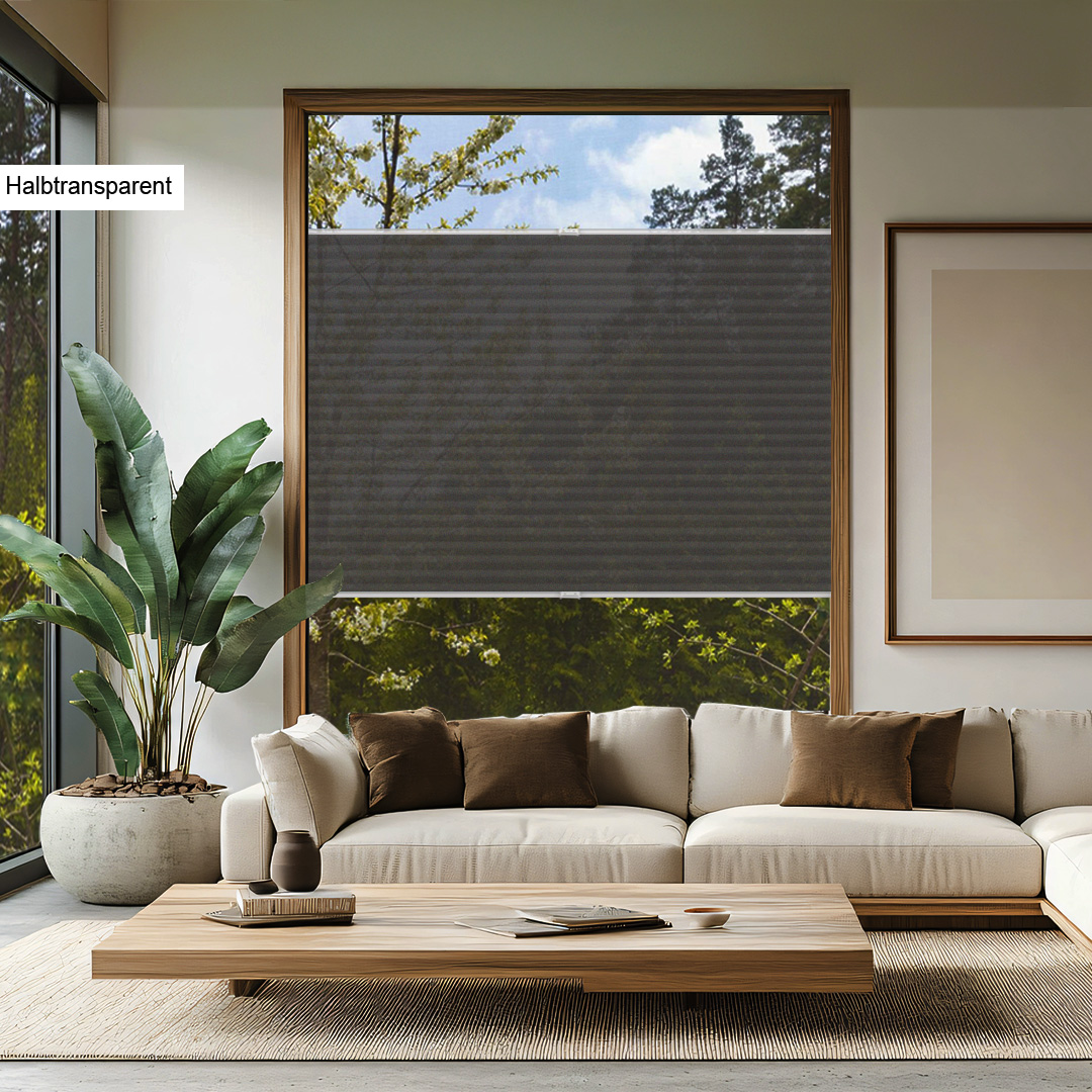 Der Plisseestoff, mit seiner leicht durchsichtigen Art, schafft die perfekte Balance. Er lässt Licht herein, schützt aber auch vor neugierigen Blicken. Er lässt ausreichend Tageslicht in den Raum, sorgt aber gleichzeitig dafür, dass neugierige Blicke von außen abgehalten werden. Diese Eigenschaften machen den Stoff besonders geeignet für verschiedene Wohnräume wie Wohnzimmer, Schlafzimmer oder auch Büros. Die leichte Transparenz schafft eine helle und freundliche Atmosphäre, während der notwendige Sichtschutz gewährleistet ist.
