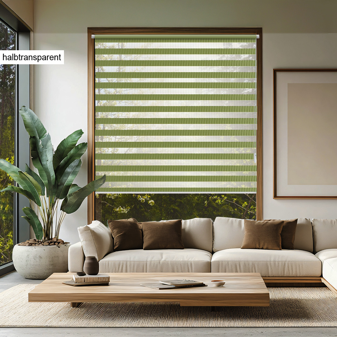 Der Stoff ist halbtransparent und ermöglicht eine individuelle Einstellung des Lichteinfalls. Durch die flexible Anpassung der transparenten und blickdichten Streifen können Sie den Lichteinfall ganz nach Ihren Wünschen regulieren – von einem hellen, lichtdurchfluteten Raum bis hin zu einem effektiven Sichtschutz. Damit eignet sich der Stoff ideal für verschiedene Wohnräume wie Wohnzimmer, Schlafzimmer oder auch Büros, wo sowohl Lichtsteuerung als auch Privatsphäre wichtig sind.
