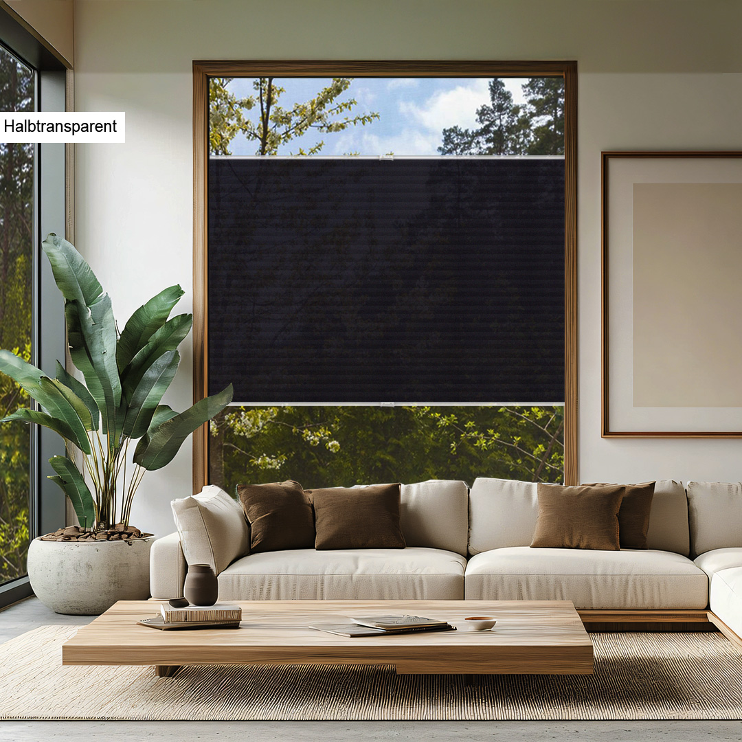 Der Plisseestoff, mit seiner leicht durchsichtigen Art, schafft die perfekte Balance. Er lässt Licht herein, schützt aber auch vor neugierigen Blicken. Er lässt ausreichend Tageslicht in den Raum, sorgt aber gleichzeitig dafür, dass neugierige Blicke von außen abgehalten werden. Diese Eigenschaften machen den Stoff besonders geeignet für verschiedene Wohnräume wie Wohnzimmer, Schlafzimmer oder auch Büros. Die leichte Transparenz schafft eine helle und freundliche Atmosphäre, während der notwendige Sichtschutz gewährleistet ist.
