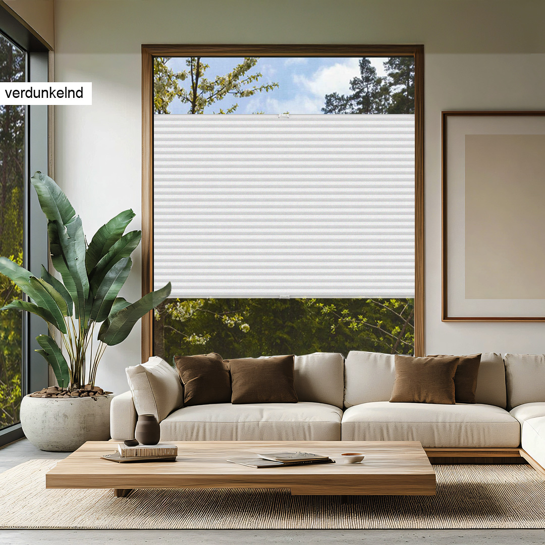 Dieser Plisseestoff ist preiswert und praktisch für Ihre Fenster und zudem leicht zu pflegen. und lässt sich mühelos reinigen. Dieser verdunkelnde Plisseestoff ist die perfekte Wahl für alle, die eine effektive Verdunkelung, Hitzeschutz und ein modernes Design in einem Produkt vereinen möchten.