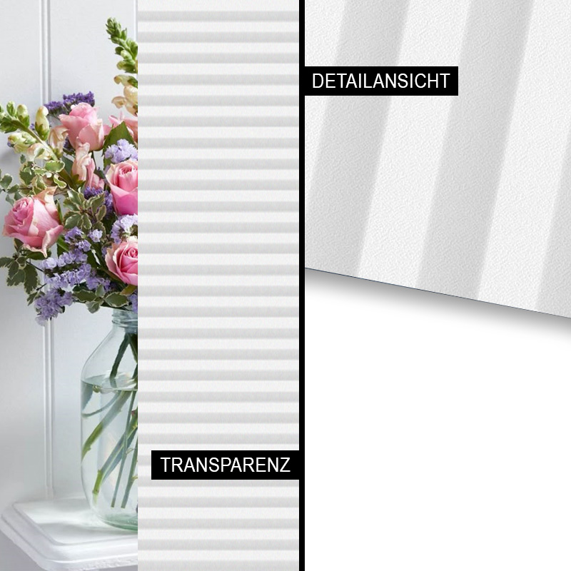 Weitere Informationen zu unserem Plissee Verdunkelung weiß/grau:
