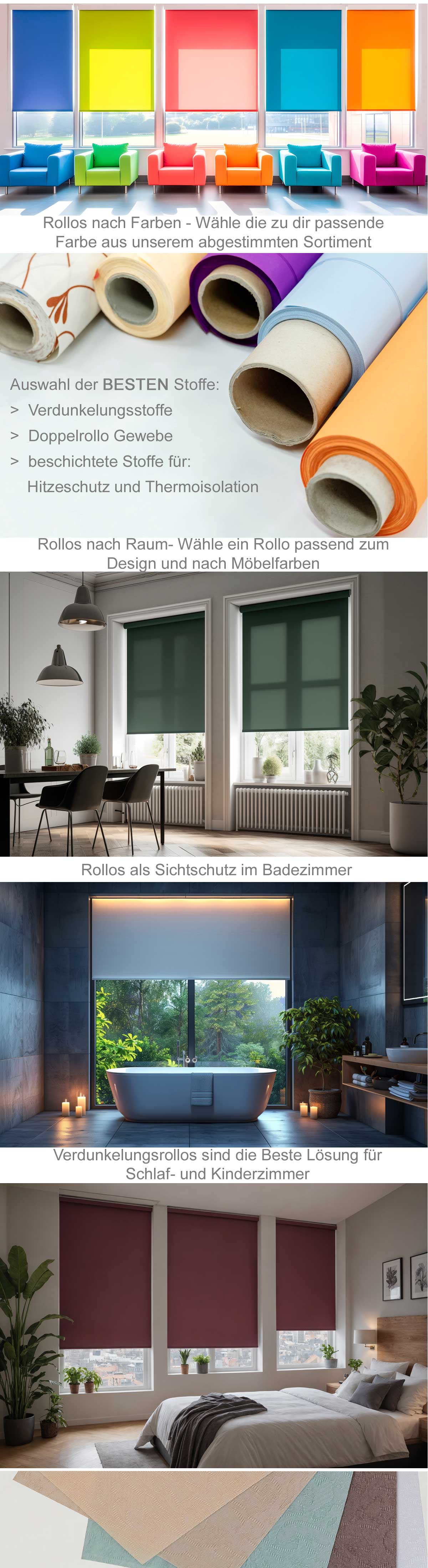- bei großen Flächen unbedingt Rollos auf Maß (Stabilität und Optik),