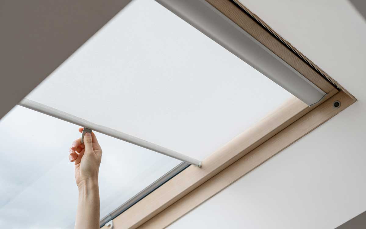 - für Schlafräume unter dem Dach: Verdunkelungsrollo am Fenster als Dachfenster-Variante.